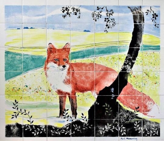 Red Fox Ceramic Tile Kitchen Backsplash Mural Custom Bespoke 24