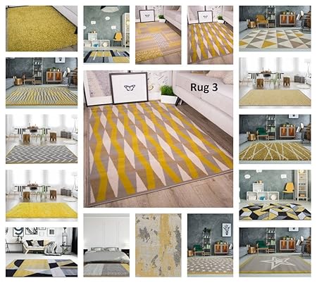 The Rug House Milan Ochre Mustard Yellow Grey Beige Diamond Tile