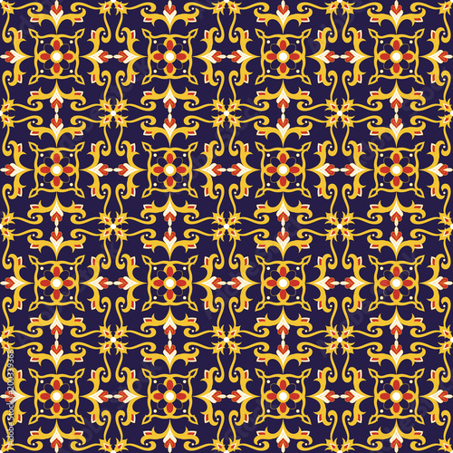 Spanish Tile Pattern Seamless Vector With Flower Ornaments