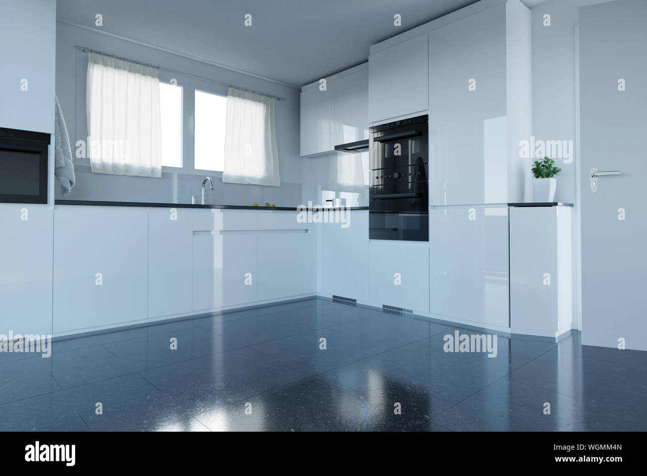 3d Rendering Of White Elegante Kitchen With Natural Stone Tiles