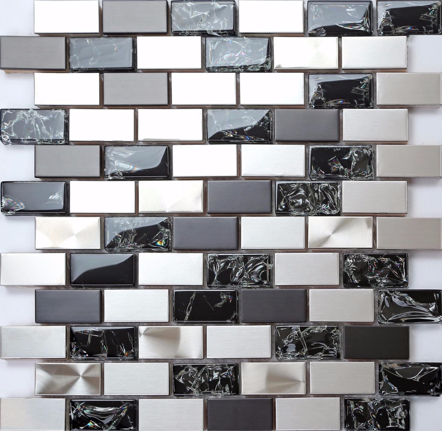 Backsplash Tile Brushed Aluminum Tiles Silver Metal And Glass