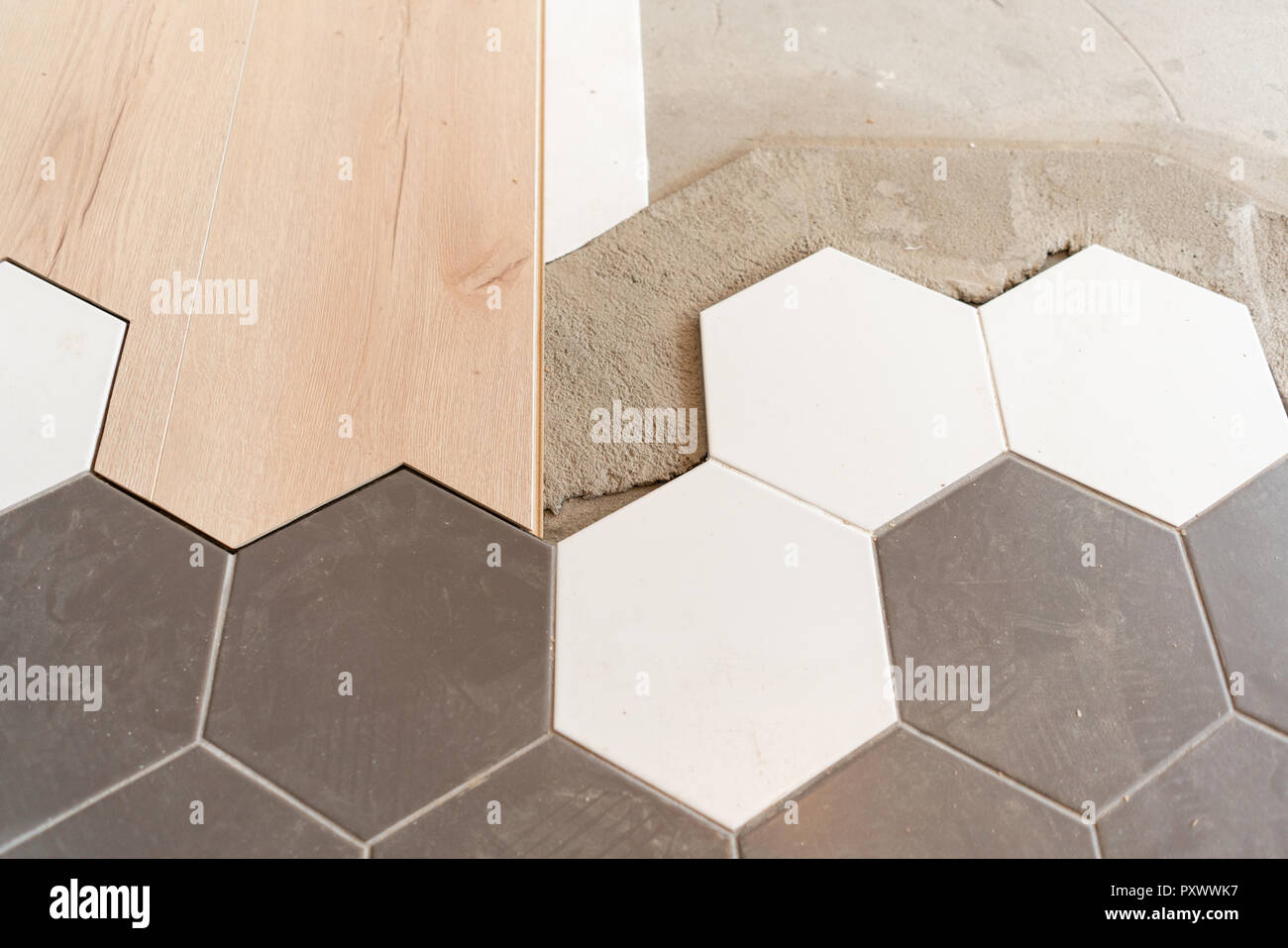 The Combination Of Wood Panels Of Laminate And Ceramic Tiles In