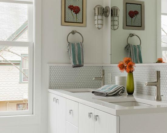 White Mother Of Pearl 1 X 1 Backsplash Traditional Kitchen