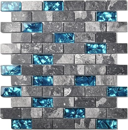 Sea Blue Glass Mosaic Tile Kitchen Backsplash Grey Marble Bathroom