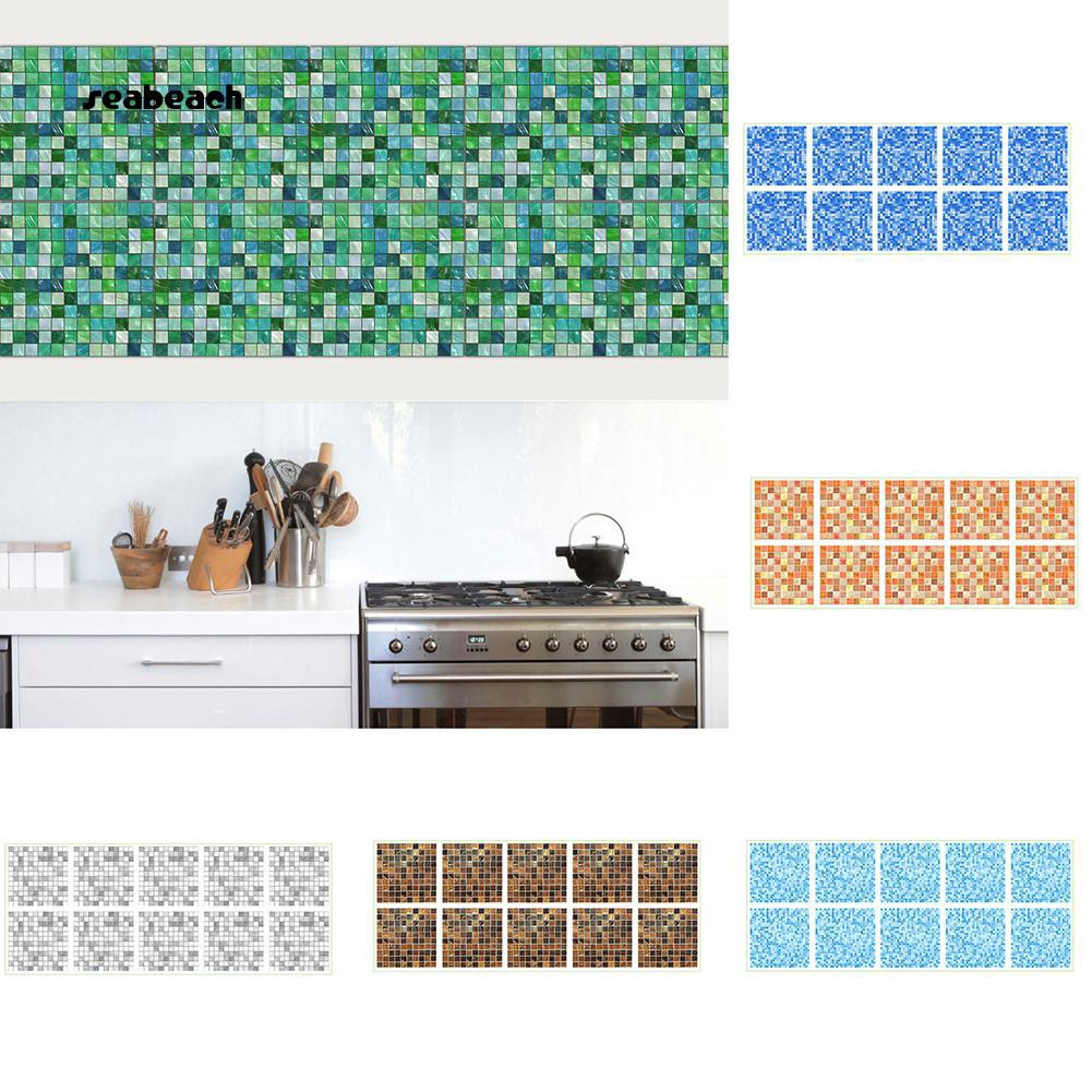 Seabeach 10pcs Mosaic Tile Waterproof Wall Stickers Mural Decals