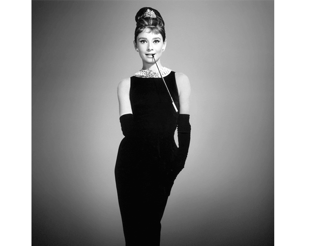 - Vintage 60s Audrey Hepburn Black Dress with Pearls and Bow Breakfast at Tiffany's small