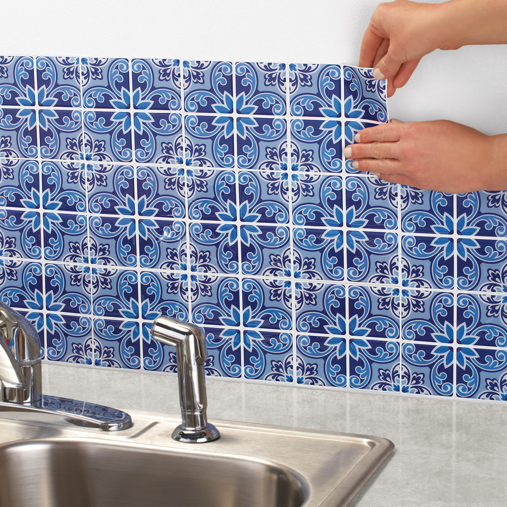 Roommates Sticktiles Blue Mosaic Peel And Stick Backsplash Tiles 4