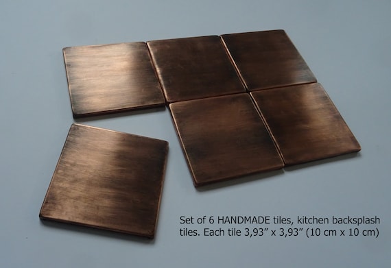 Kitchen Tiles Set Of 6 Brown Patinated Copper Tiles Etsy