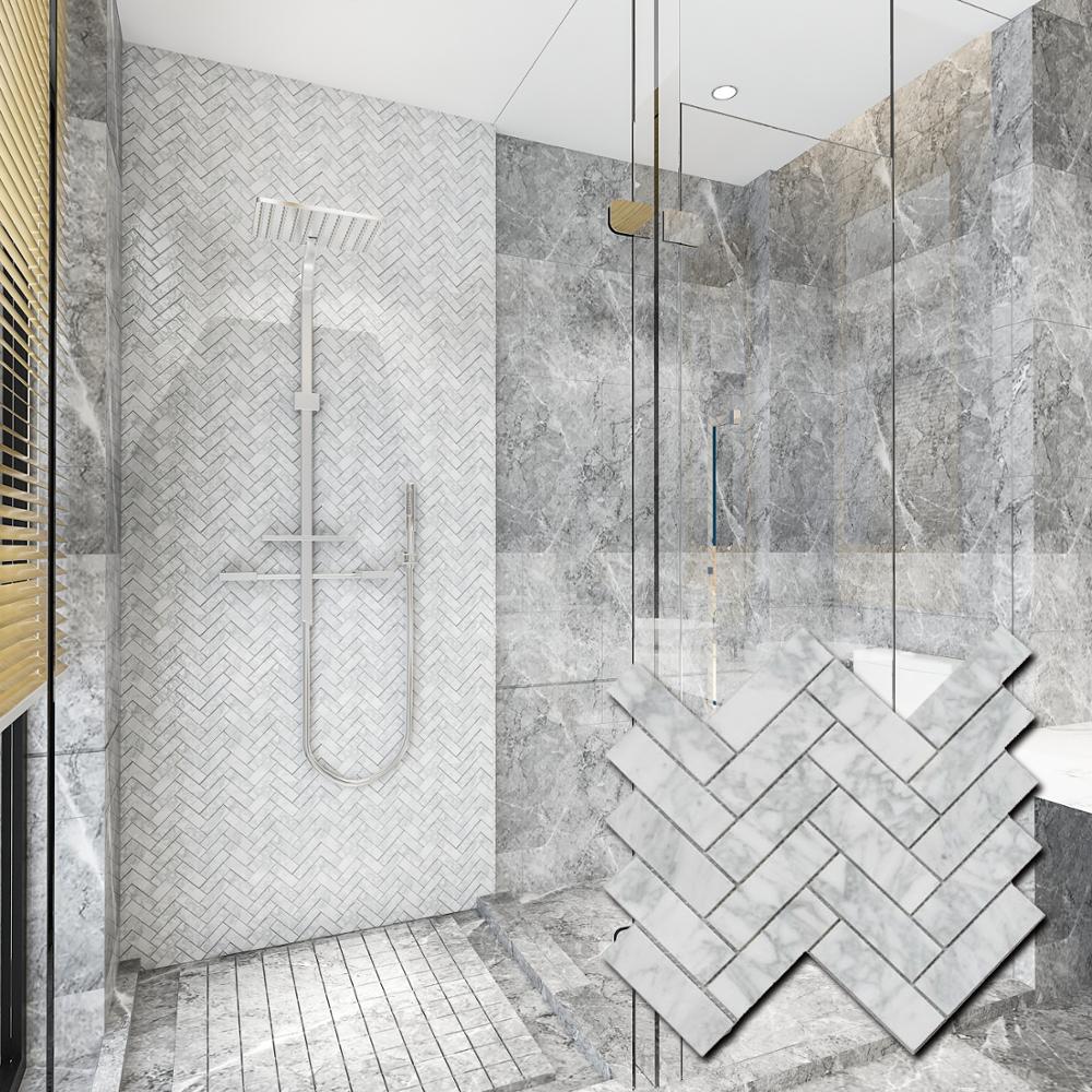 White Tile Backsplash Herringbone