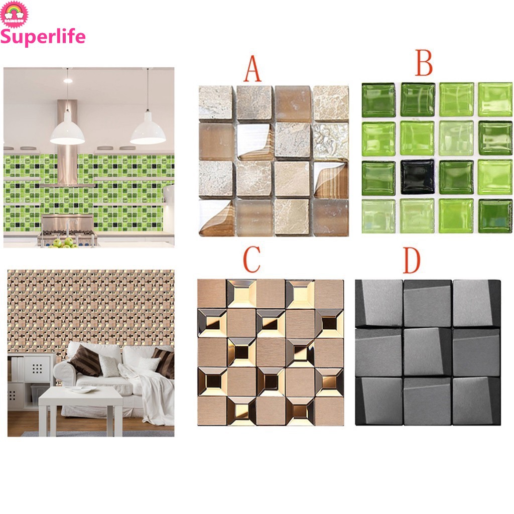 Diy 3d Mosaic Self Adhesive Wall Tile Sticker Vinyl Home Kitchen