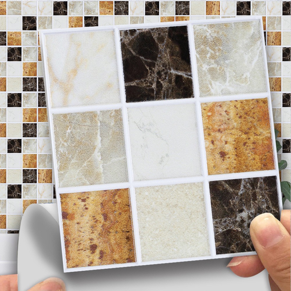 18pcs 10x10cm Pvc Kitchen Adhesive Marble Mosaic Wall Sticker Tile