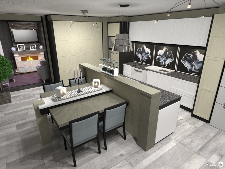 3d Realistic Mock Up Of Kitchen Room With White Clean Floor And