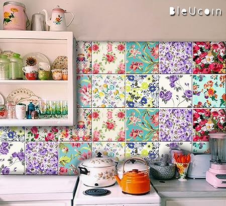 Fityle 20pcs Bohemia Style Retro Kitchen Bathroom Tiles Wall