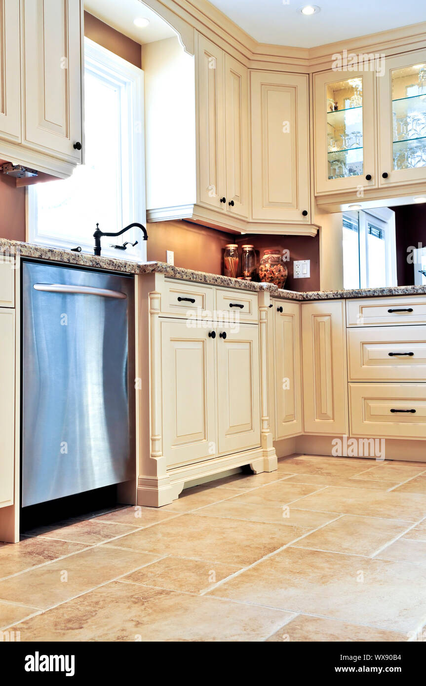 Modern Luxury Kitchen With Ceramic Tile Floor Stock Photo