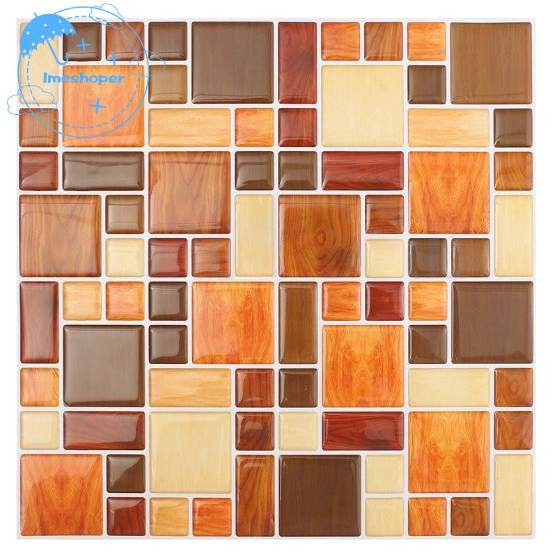 6 Pcs Orange Mosaic Self Adhesive Bathroom Kitchen Decor Wall