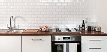 White Metro Retro Tile Panel Kitchen Splashback Affordable